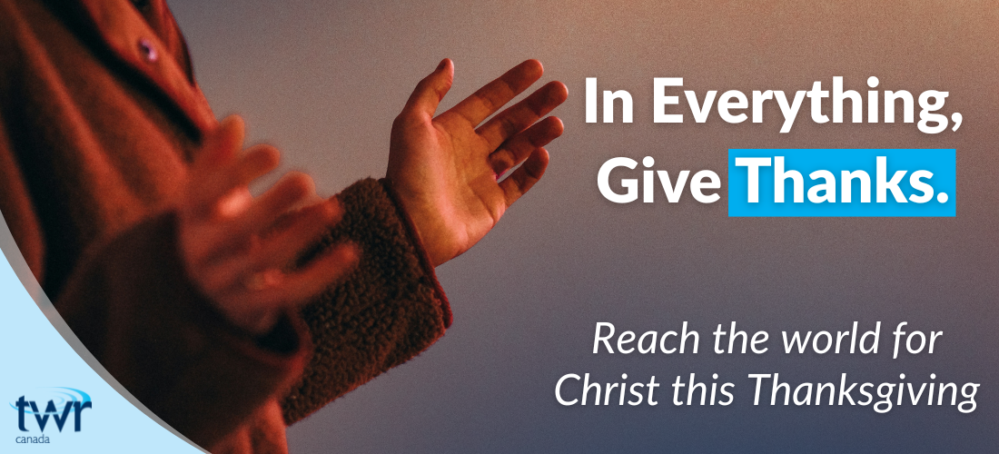 As we enter this Thanksgiving season, we give thanks to God for you—our faithful supporters who make it possible for the gospel to reach the world through TWR Canada. Because of your generosity, lives are being changed across four continents as people hear the Word of God in their own language—many for the first time.